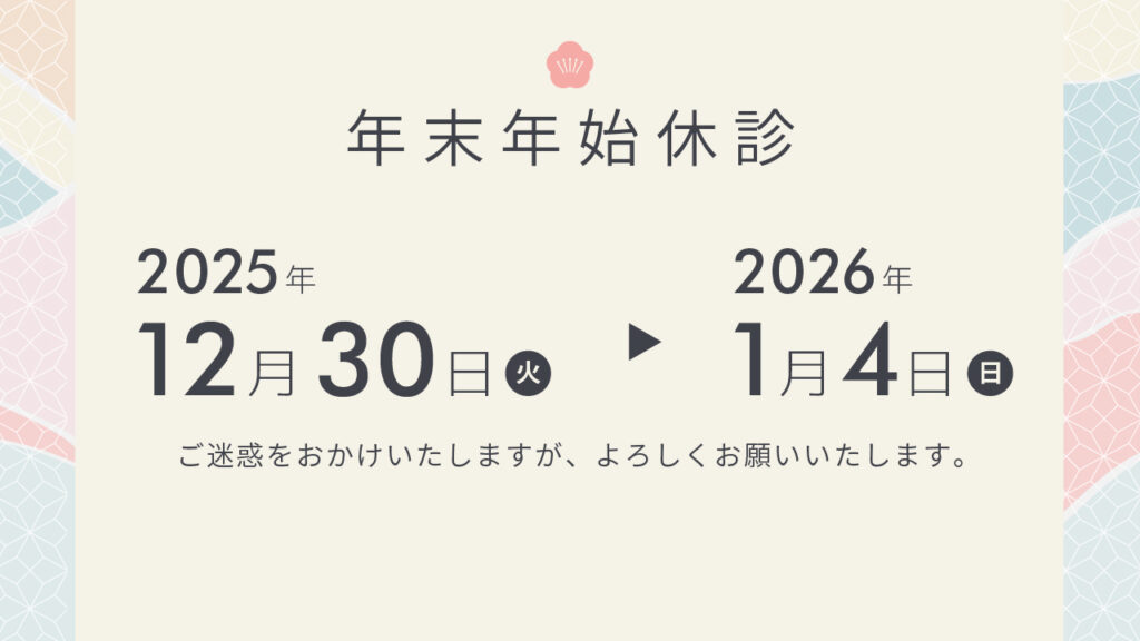 年末年始の休診日は、12月30日(火)~1月4日(日)の予定です。